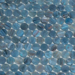You can apply these blue glass penny round mosaic tiles to a number of areas, like a kitchen backsplash, living room fireplace facing or accent wall, entryway or mudroom floor, or any outdoor space. Whether you want to use it for a stunning blue glass penny round backsplash, an accent wall, a patio, or deck, this glass mosaic tile will turn heads wherever it is installed! The mixture of gray and blue tones in the glass add depth and dimension to your tiled areas, bringing a beautiful splash of color to blue kitchen tile backsplashes, soothing penny tile shower wall designs, or even slip-resistant penny round floors in areas that are prone to spills like shower floors, bathrooms, and utility rooms!