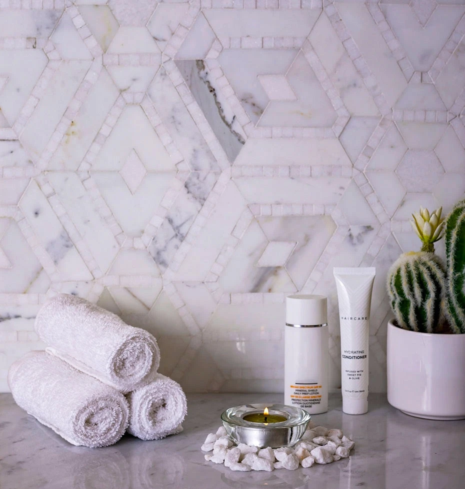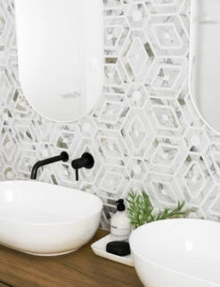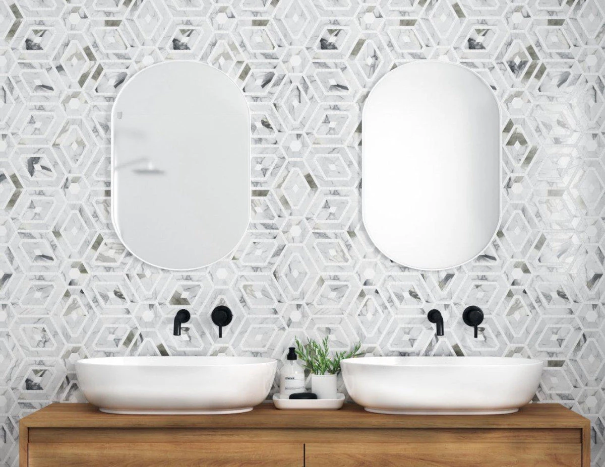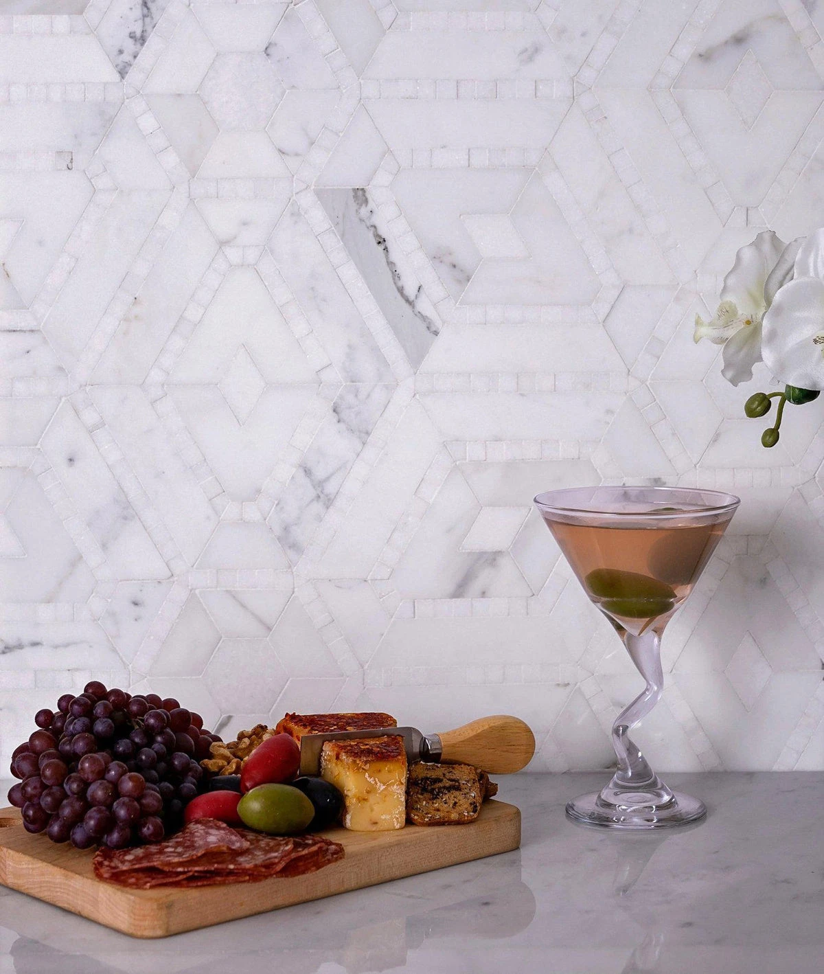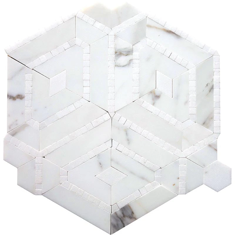 The movement and energetic pattern of the Diamond & Hex Calacatta gold marble mosaic tile will allow you to add exciting emotions to any space. The bold and eye-catching design of this geometric tile is suitable for a wide range of design projects, and you can use this marble tile to add a creative flair and texture to your bathrooms, kitchens, hallways or even living rooms. Whether you choose to create a feature wall or statement floors, using these polished mosaics will allow you to grace your home with stunning graphic design. You can give your hallway the love and attention it deserves by installing this gold marble tile for floors. By using this Calacatta gold marble tile, you can also create a decorative feature wall in your kitchen, bathroom, or living room and add a ton of personality to your home.