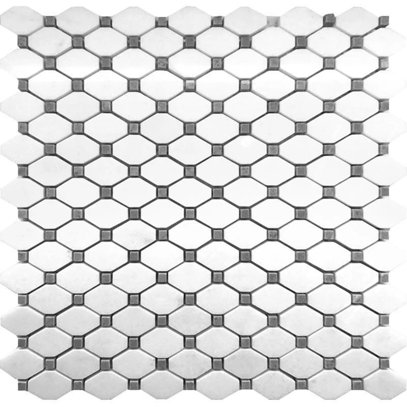 This gorgeous tile presents the dramatic combination of classic whites with cloudy greys in Bardiglio Nuvolato marble*. White marble tile is contrasted by deep grey squares for a dash of drama within the elongated octagon pattern. Tile can easily embellish your décor and create focal points by creating elegant, intricate looks on your walls and floors. Bring some creativity into your interiors with elongated octagon tile and combine elegance with artistic flair. Octagon tile can easily meet the needs of traditional to contemporary design and never seems to go out of style.