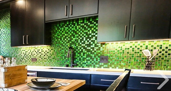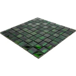 | Sold by: Sheet Sheet Size: 11.3″ x 11.3″ Chip Size: 1.2 х 1.2″/ 30 x 30 mm Thickness: 5/16″ Material: Glass Color: Green Finish: Glossy, Matte Mounting type: Mesh Mounted Recommended Adhesive: Laticrete Glass Tile Adhesive Lite | Area of use: