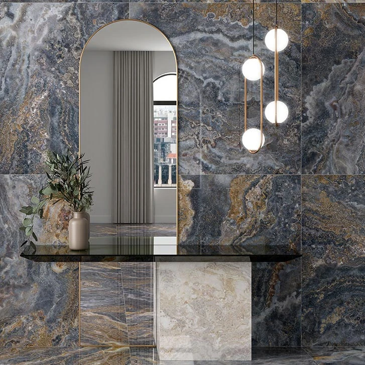 The Emporio Baroque Blue stone-look porcelain tile features a blue and white marble pattern. A luxurious look that adds an elegant touch to any home, this tile is water-resistant and suitable for both residential and commercial spaces. With its large format, this tile is perfect for creating a stunning stone slab look in your home. It is also easy to clean and maintain, making it the perfect choice for any home.