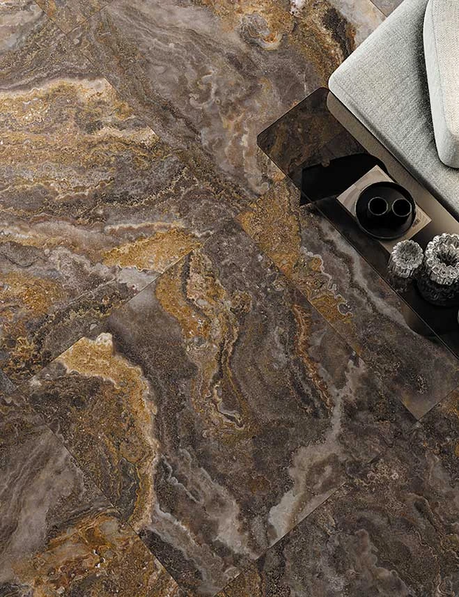 Add a touch of luxury to your home with Emporio Baroque Clay Marble Porcelain Tile. This stone-look tile is perfect for floors and walls, adding a touch of elegance to any space. The rich brown and gold tones of the tile are perfect for creating a warm, inviting atmosphere in your home. The porcelain construction is water-resistant and durable, making it perfect for both residential and commercial applications.