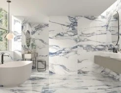 *Pattern will vary from tile to tile with a marble pattern inspired by the natural veining of Calacatta Blue marble.