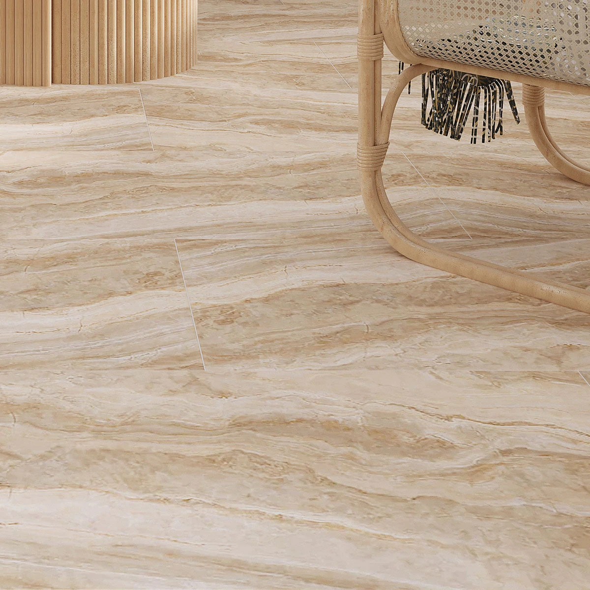 | Sold by: Box Sheet Size: 23.62″ x 47.25″ Chip Size: 23.7 x 47.25″/ 600 x 1200 Thickness: 13/32″/ 10.5 Material: Porcelain Color: Beige Finish: Polished Porcelain Edges: Rectified Packing info: