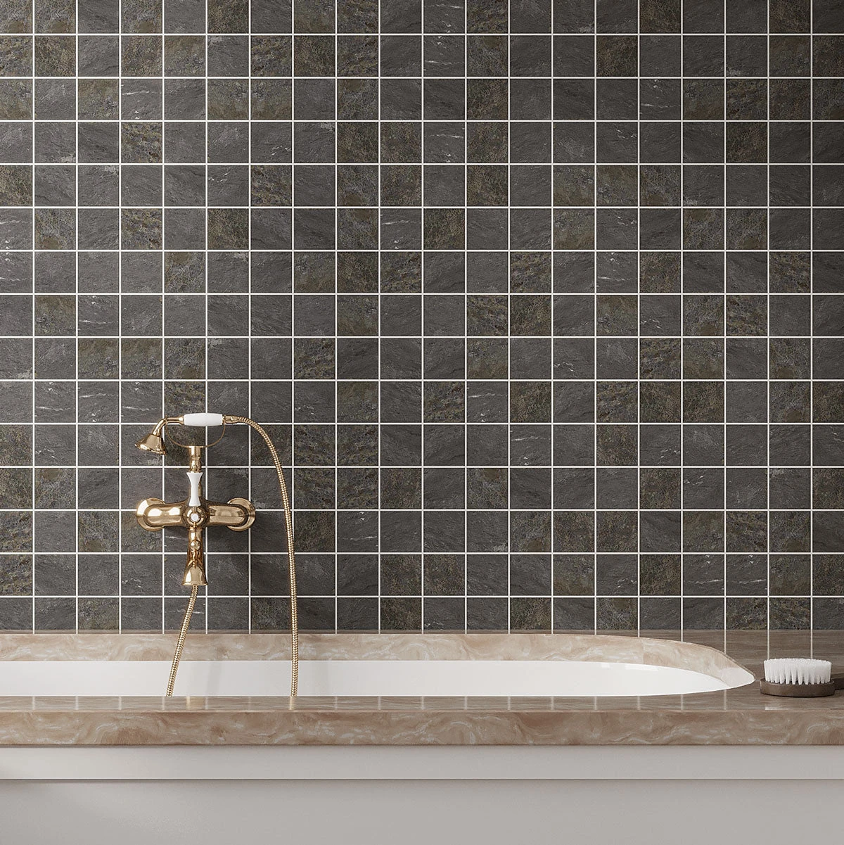 | Sold by: Sheet Sheet Size: 11.81″ x 11.81″ Chip Size: 2″ x 2″ Material: Porcelain Color: Gray Porcelain Edges: Rectified | Collection: EMPORIO |
