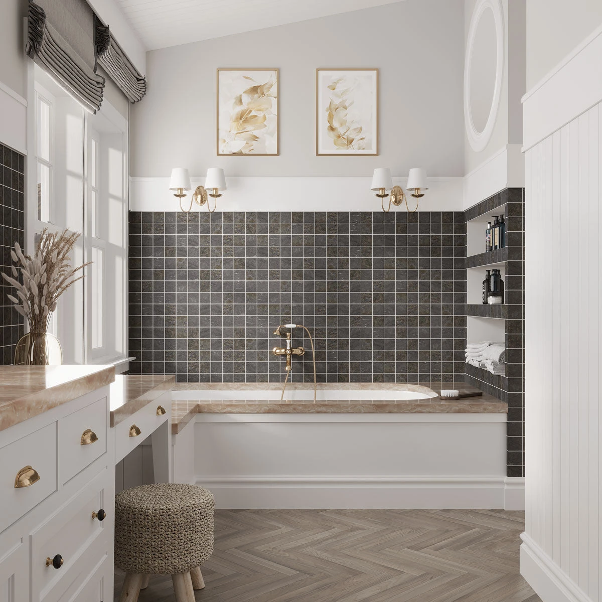 The sleek, modern grey and white appearance of the Emporio Graphite will enhance your home decor. These mosaic tiles are perfect for a traditional kitchen backsplash or bathroom project. Create an original design with these large-format porcelain tile sheets. Water resistant and easy to clean, this is a great choice as a flooring material in wet areas including kitchens