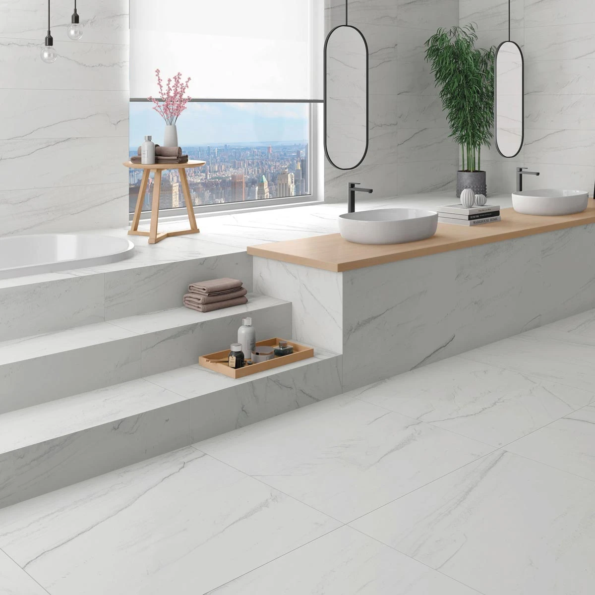 Discover stylish sophistication with Emporio Statuario White Matte 24×48 porcelain tile. This porcelain tile gives the look of a classic white stone with striking gran veins that will elevate the elegance in any space. Perfect for indoor walls, residential floors, shower walls and steam rooms, this versatile tile is also great for backsplashes, laundry rooms and accent walls or to line your fireplace surround. Get creative with this modern matte finish tile! With its timeless aesthetic and durability that stands up to heavy foot traffic, you can trust that this elegant design will last for years to come. Let your imagination run wild and make it yours!