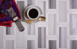 | Sold by: Sheet Sheet Size: 9.7″ x 12″ Chip Size: 1.8×4.8″/45×122 mm Thickness: 3/8” Material: Equator, Thassos Color: Gray Finish: Polished Mounting type: Mesh Mounted Packing info: