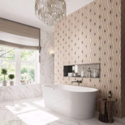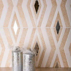 We love our Etched Marble with Antique Mirror Diamonds Mosaic for a truly captivating appeal. A contrast of soft beige Limestone Cloudy marble and a popping Antique Mirror mosaic tile creates a unique look you cannot take your eye off. A polished finish delivers a luxurious gentle gloss, that highlights any home. This diamond tile is applicable to residential light traffic floors and all kinds of wall applications. Use it for your general walls, shower walls, or add a bright statement wall for a focal point. Cover the entire area or enhance some elements of your design, you can be sure this etched mirror tile will not disappoint you. Easy maintenance and a long-lasting look is an excellent choice for your marble kitchen backsplash, hallway, living room, or other indoor areas.