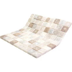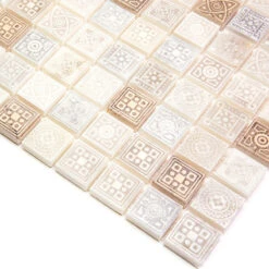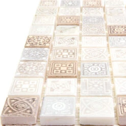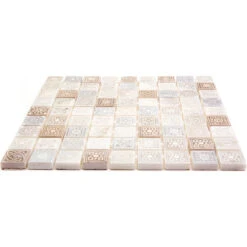 Enrich your home design with eye-catching details of our Ethnic Cream mosaic. Formed of simple square tile pieces it carries diverse patterns that remind you of ancient times. The neutral palette will match any color theme and will create a relaxed, soothing feel. 12×12 sheets come on a mesh backing and are easy to install. This etched tile will stand as a striking focal point of any interior design. It is a great addition to your kitchen, living room, dining room, bathroom, bedrooms, hallways, and entrances. Made of natural stone these mosaics are secure for low traffic floors and wall applications. They create wonderful accents and can make an amazing stylish decorative border, a TV-stand, a popular backsplash, a mirror surround, or a feature wall.