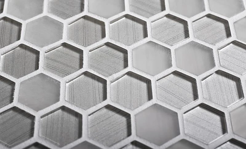 A: Fabrique White Hexagon Glass Mosaic Tile has a mix of polished and frosted glass pieces for a unique finish that will dazzle anywhere you put it! You can use Tile Club’s sheet photos to get a sense of the color and finish, order 4″ x 5″ sample swatch to view it at home, or order a single sheet to see a full piece of tile.