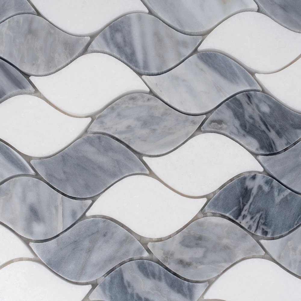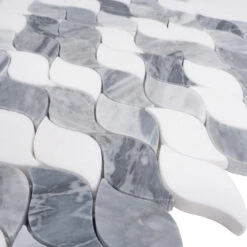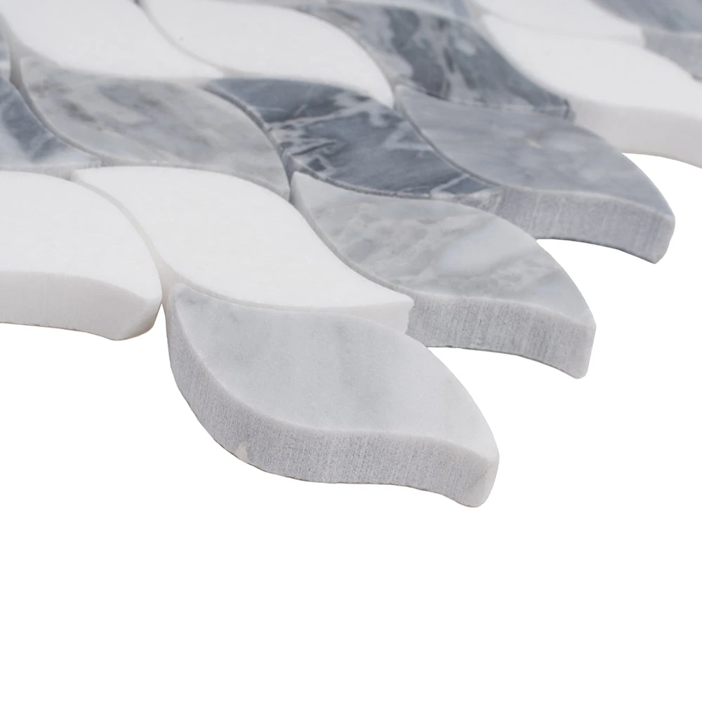 Our Falling Leaves Calacatta Bluette marble mosaic tiles are an ode to the traditionally adored Calacatta marble stone that is one of the rarest marble varieties in the world. If you are looking for an exotic marble tile that is unique and unexpected but graceful and luxurious at the same time, then this marble mosaic tile is for you. Calacatta Bluette marble tile is an incomparable creamy, blue color that is unlike any other type of marble out there and due to its limited availability, it is the very essence of true luxury and lavishness. The integrated blue tint and toned organic veining give this mosaic marble tile an effervescent glimmer when light hits it making it uniquely suited to a whole range of décor styles from retro to ultra-modern. Not to mention the beautiful pattern of falling leaves is artistic and eye-catching at first glance much like designer wallpaper but more substantial and lifelike. The addition of bluish hues to the snowy white tile accounts for its allure giving it a fairytale-like, magical quality that all your guests will surely appreciate so make sure you install this tile in the where it will be seen often!