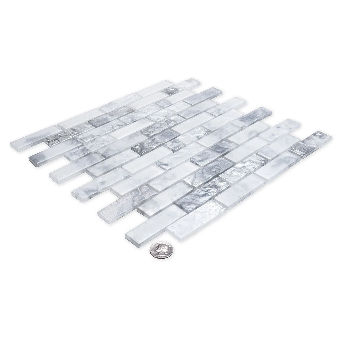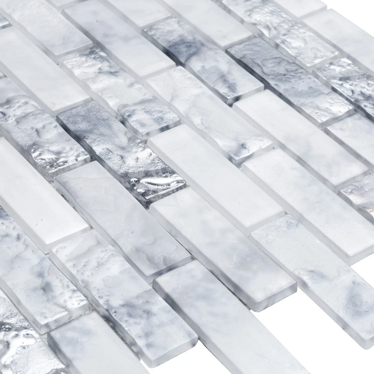 Take your living space to the next level with the Frozen Dreams Brick Glass Mosaic Tile. With its striking combination of white and silver, this captivating glass tile will transform any area of your home into an oasis of beauty and sophistication. The exquisite blend of colors creates a magical aesthetic that is perfect for creating interior designs that stand out from the crowd.