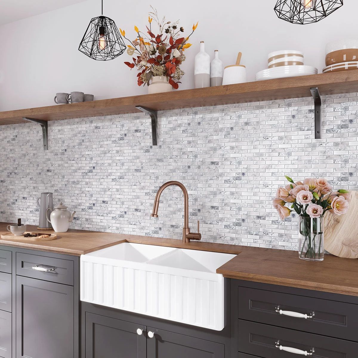 Who doesn’t want their home to feel relaxing, fresh and carefree? If that sounds like you, this white and silver mosaic tile will transform your space with that easy breezy style you will love for many years!