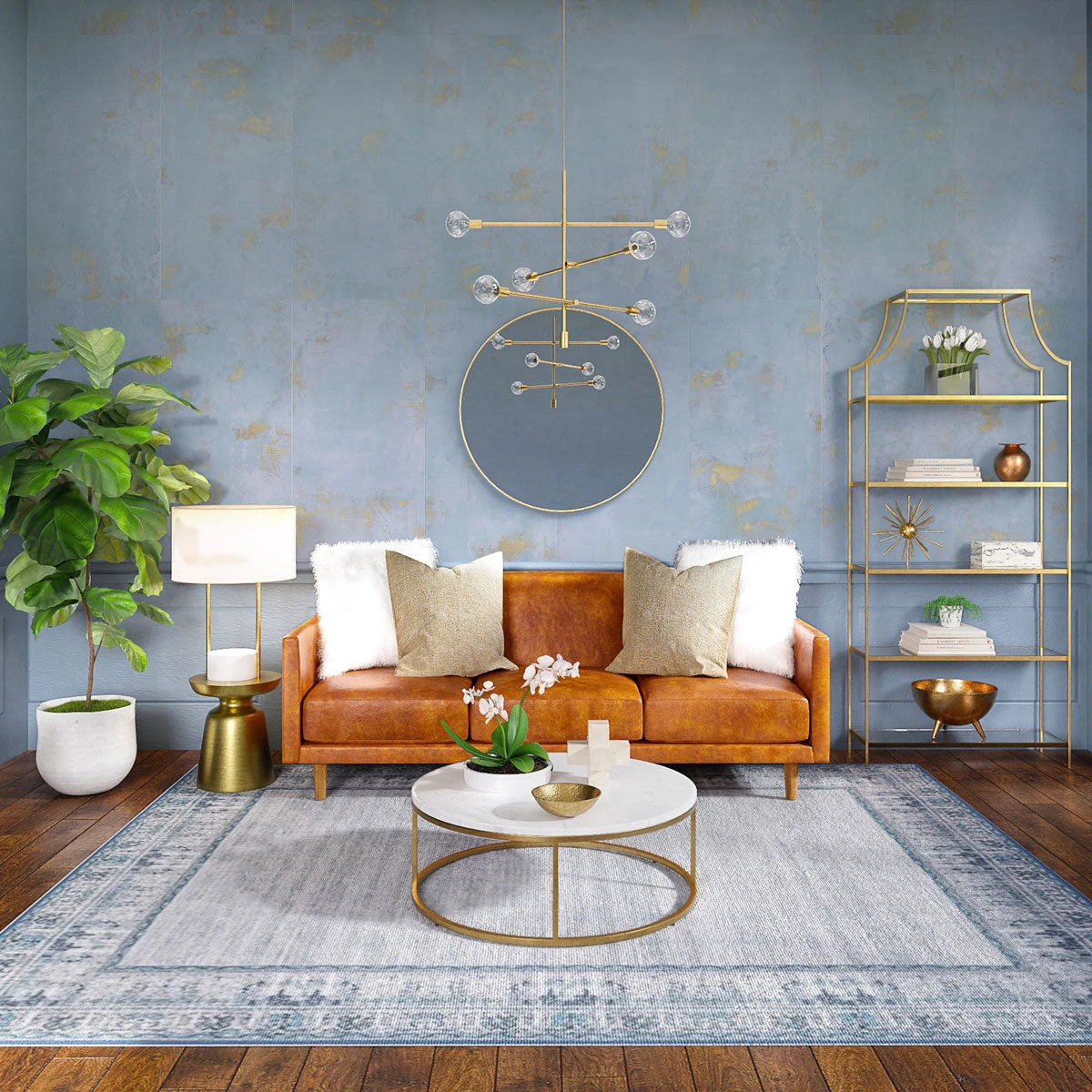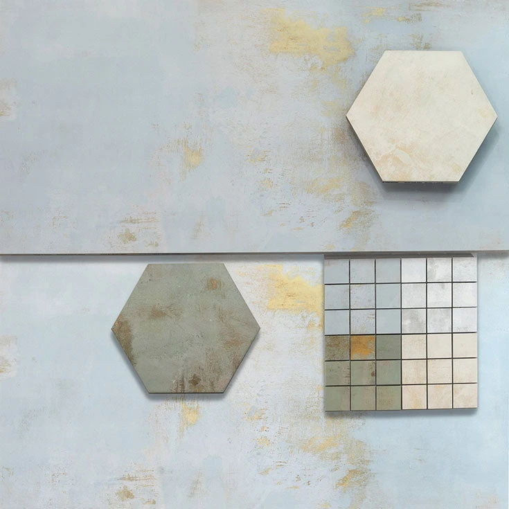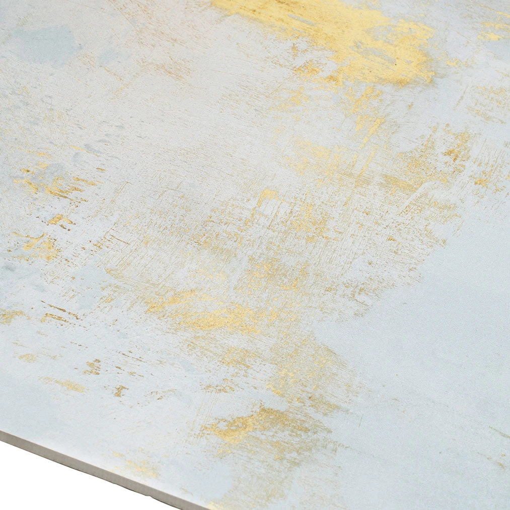 Introducing Gilded Age Blue Natural, the luxurious and timeless porcelain tile inspired by Impressionist art! This large-format backsplash tile is ideal for indoor and outdoor residential floors, showers, and steam rooms. The unique brushstroke design of these gold tiles takes on the look of wallpaper for a classic yet modern feel.