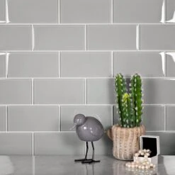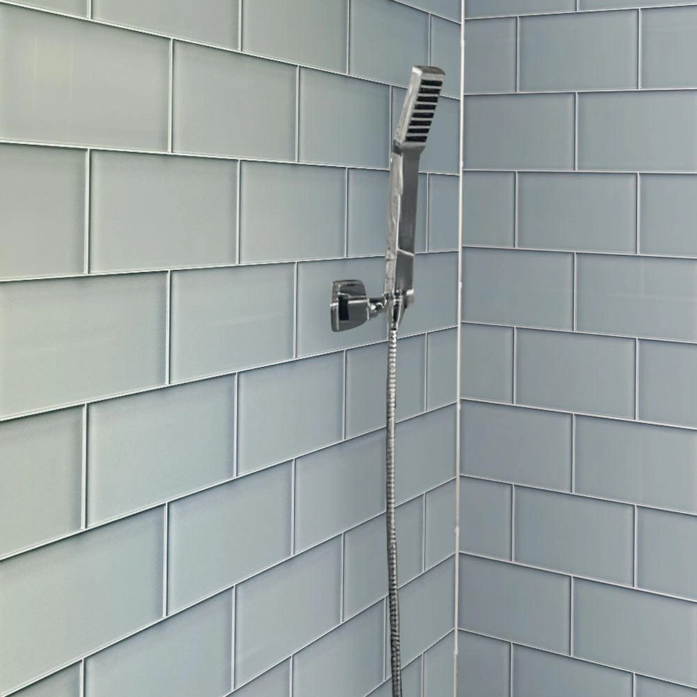 | Sold by: Box Sheet Size: 3″ x 6″ Thickness: 5/16 Material: Glass Color: Gray Finish: Glossy Recommended Adhesive: Laticrete Glass Tile Adhesive Lite Packing info: