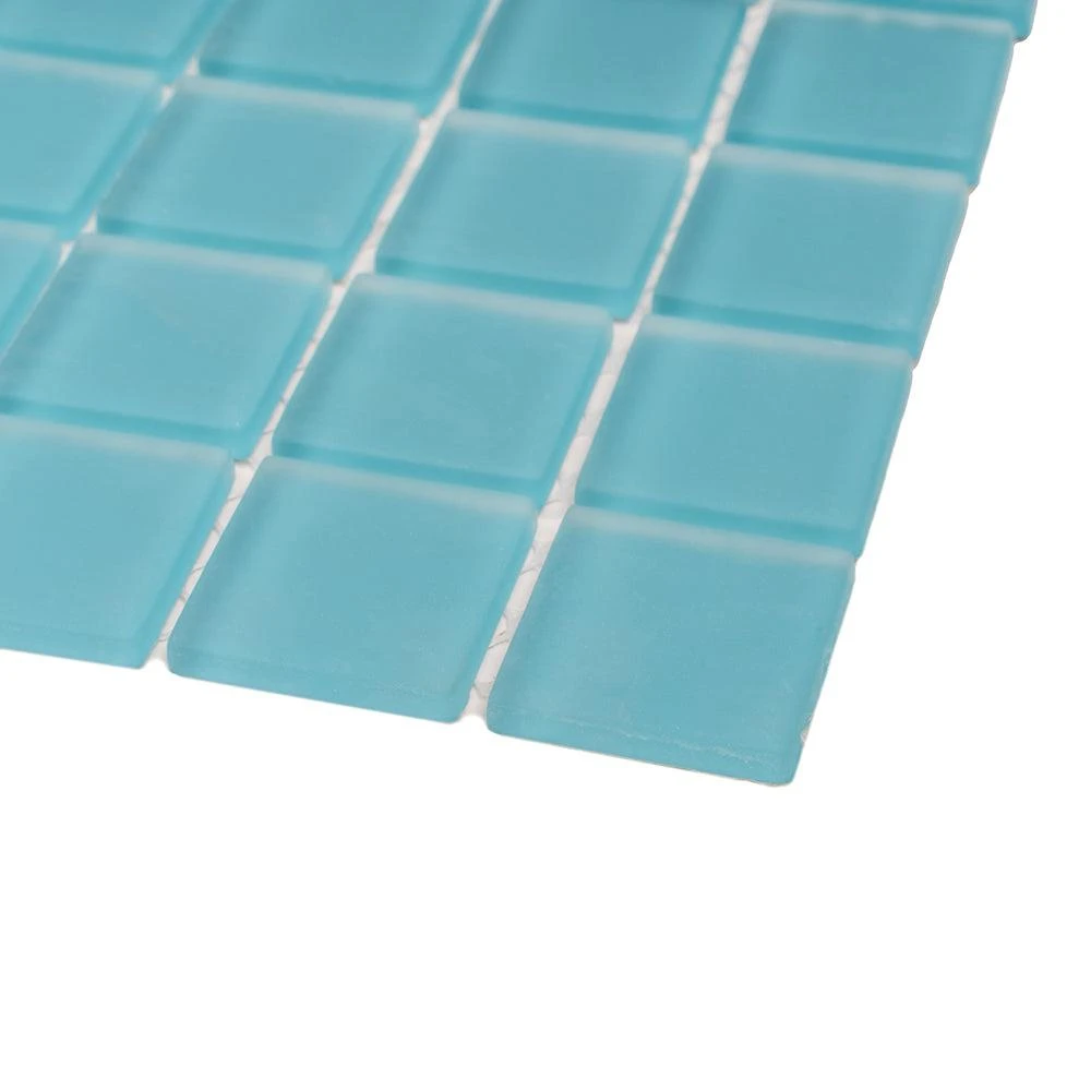 | Sold by: Sheet Sheet Size: 11.8″ x 11.8″ Material: Glass Color: Blue Finish: Matte Thickness: 5/32 Mounting type: Mesh Mounted Recommended Adhesive: Laticrete Glass Tile Adhesive Lite | Shop Matching Glacier Laguna Blue Frosted Glass Pencil LinerArea of use: