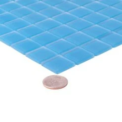 | Sold by: Sheet Sheet Size: 11.8″ x 11.8″ Thickness: 5/32 Material: Glass Color: Blue Finish: Matte Mounting type: Mesh Mounted Recommended Adhesive: Laticrete Glass Tile Adhesive Lite | Area of use:
