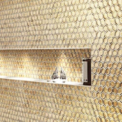 Use hexagon glass tile to create a striking backsplash even if only covering a small section of a wall adjacent to a sink. These gold glass tiles are sure to elevate your design scheme and will instantly attract the eye when entering the room. Even a small band of gold glass tiles can create a brighter, more interesting and ever-changing accent in the kitchen as the lighting shifts throughout the day!