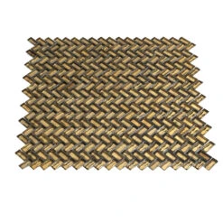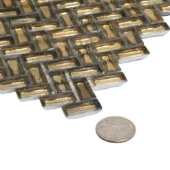 | Sold by: Sheet Sheet Size: 11.8″ x 11.9″ Chip Size: 0.4 x 0.9″ Width: 11.8 Length: 11.9 Thickness: 1/4″ Material: Glass Color: Gold Finish: Glossy Mounting type: Mesh Mounted Recommended Adhesive: Laticrete Glass Tile Adhesive Lite Packing info: