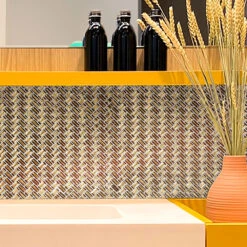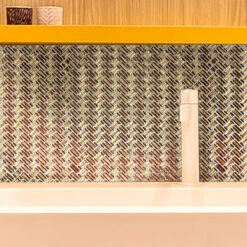 This gold tile color is a unique solution to any design and a perfect way to enhance your home with a glamorous look. Pieces of frosted glass in a classic herringbone pattern adds an iridescent glow and grace your walls with natural light, creating a truly regal effect. This mosaic will be a treasure of any interior space and can be applied to various surfaces. The square tile shape makes installation easy and fast. The endurance and stain-resistance of this herringbone glass tile allows you to use this product for low traffic floors and opens new possibilities for residential design. It is a great accent mosaic for your bathroom, kitchen, dining room, living room, or any other living space. Glam it up with a gold backsplash, feature wall, tv stand, or a decorative border.