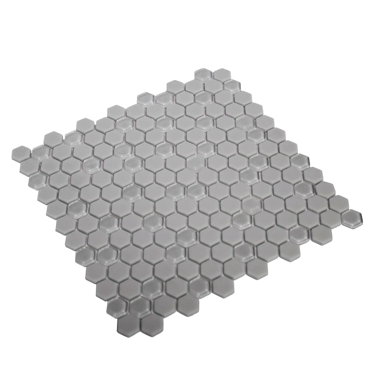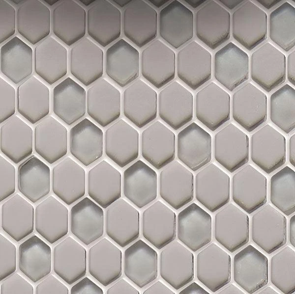 Grey mosaic tile is no doubt a popular choice among interior designers, architects, real estate agents, builders, homeowners, and landlords because of its neutral color scheme and appealing aesthetic. Grey recycled glass hexagon mosaic tiles serve as excellent flooring designs. This is because they possess a slip-resistant finish that withstands high-traffic use.