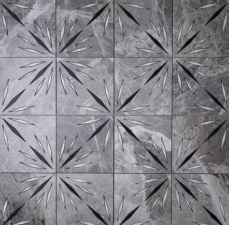 Beautifully crafted from black, white and gray marble, this stunning Grey Sparkle Waterjet Marble Mosaic tile offers the durability and high quality of a natural stone along with exquisite style. Trendy misty gray shades give this dazzling star tile a contemporary fashionable appeal that will not go unnoticed! Each tile sheet is a 12×12’’ square mosaic with a continuous pattern for easy and fast installation. The subtle but intriguing design along with the sustainability and low maintenance of these geometrical tiles make them an excellent choice for residential and commercial designs. These polished tiles are great for both indoor and outdoor applications and can be used for any tile designs you want. Grace your living space with a sparkling marble backsplash or a luxurious decorative wall! This tile offers a great choice if you are searching for a natural stone shower floor. The slip and stain resistance of this mosaic tile makes it perfect for wet and moist-prone areas such as bathrooms and showers. Due to the nature of stone, variations in color, pattern, and veining