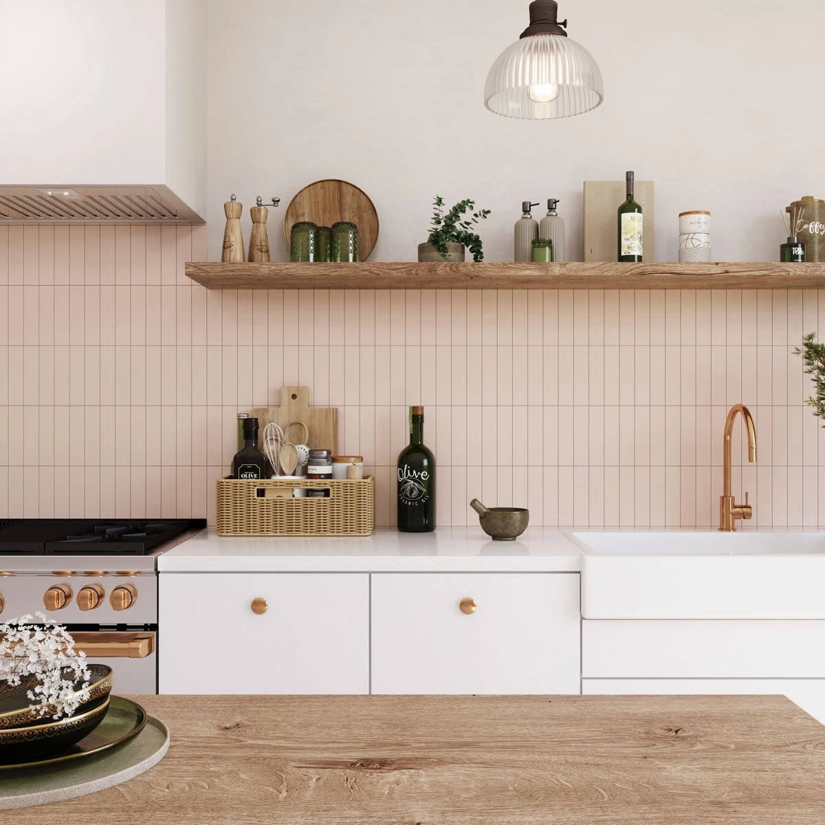 Will you opt for the timeless elegance of a horizontal layout or dare to make a bold statement with a captivating chevron arrangement? With these slim subway tiles, you have the power to create a stunning masterpiece that will leave a lasting impression on any surface! Picture a mesmerizing basketweave on your shower walls or a playfully dynamic combination of vertical and horizontal lines for a stunning living room wall. With our pink subway tiles, you can turn your walls and floors into a personalized artistic canvas!
