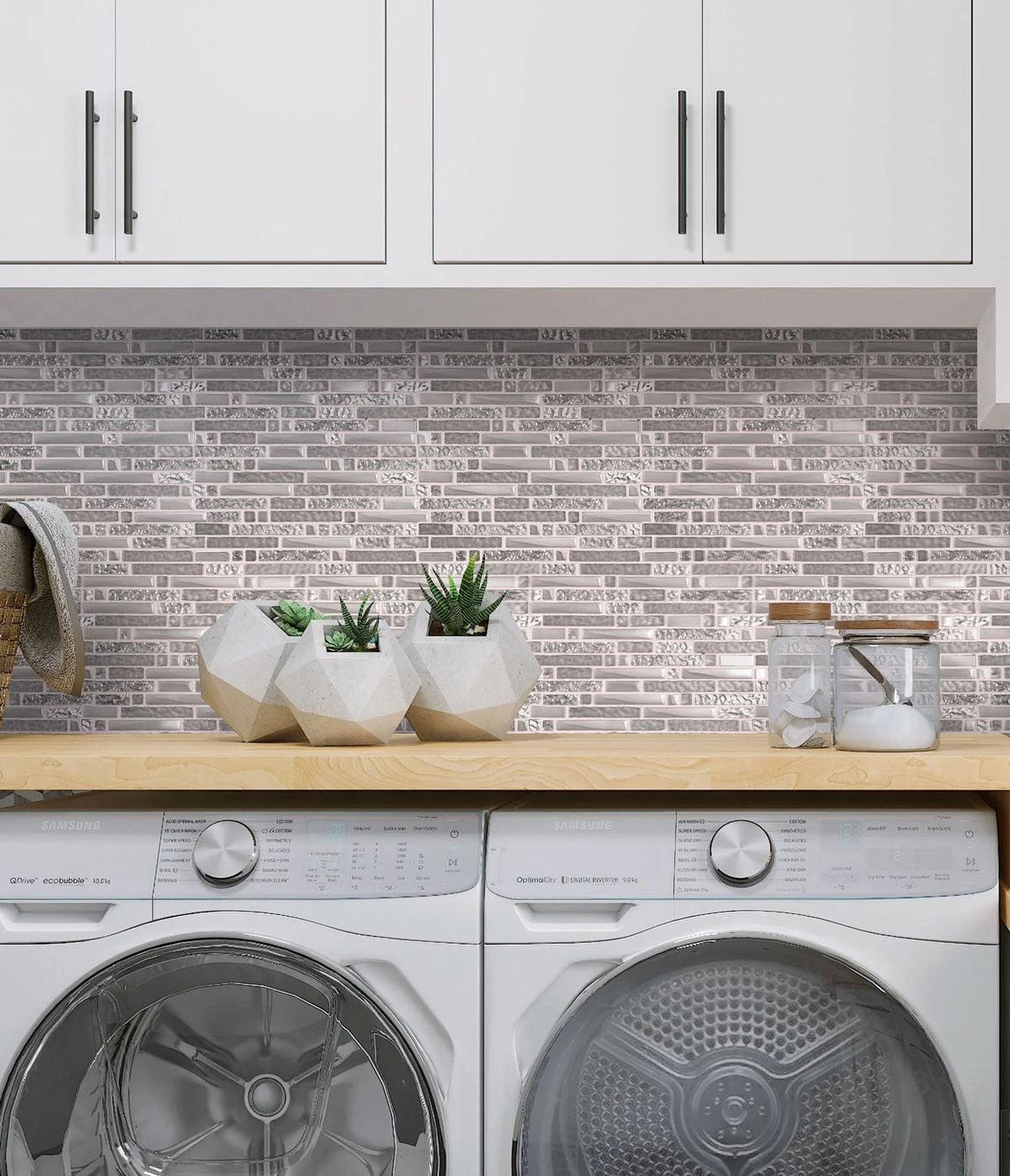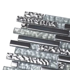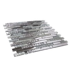 | Sold by: Sheet Sheet Size: 11.7 x 11.8″ Width: 11.7″ Length: 11.8″ Thickness: 5/16″ Material: Glass Color: Silver Finish: Glossy, Matte Mounting type: Mesh Mounted Recommended Adhesive: Laticrete Glass Tile Adhesive Lite Packing info:
