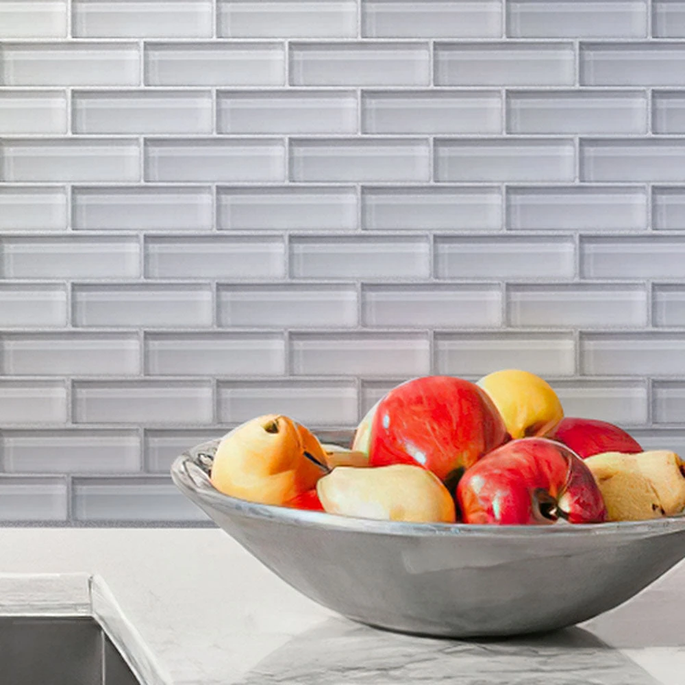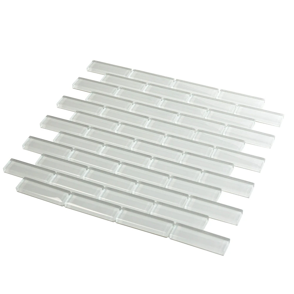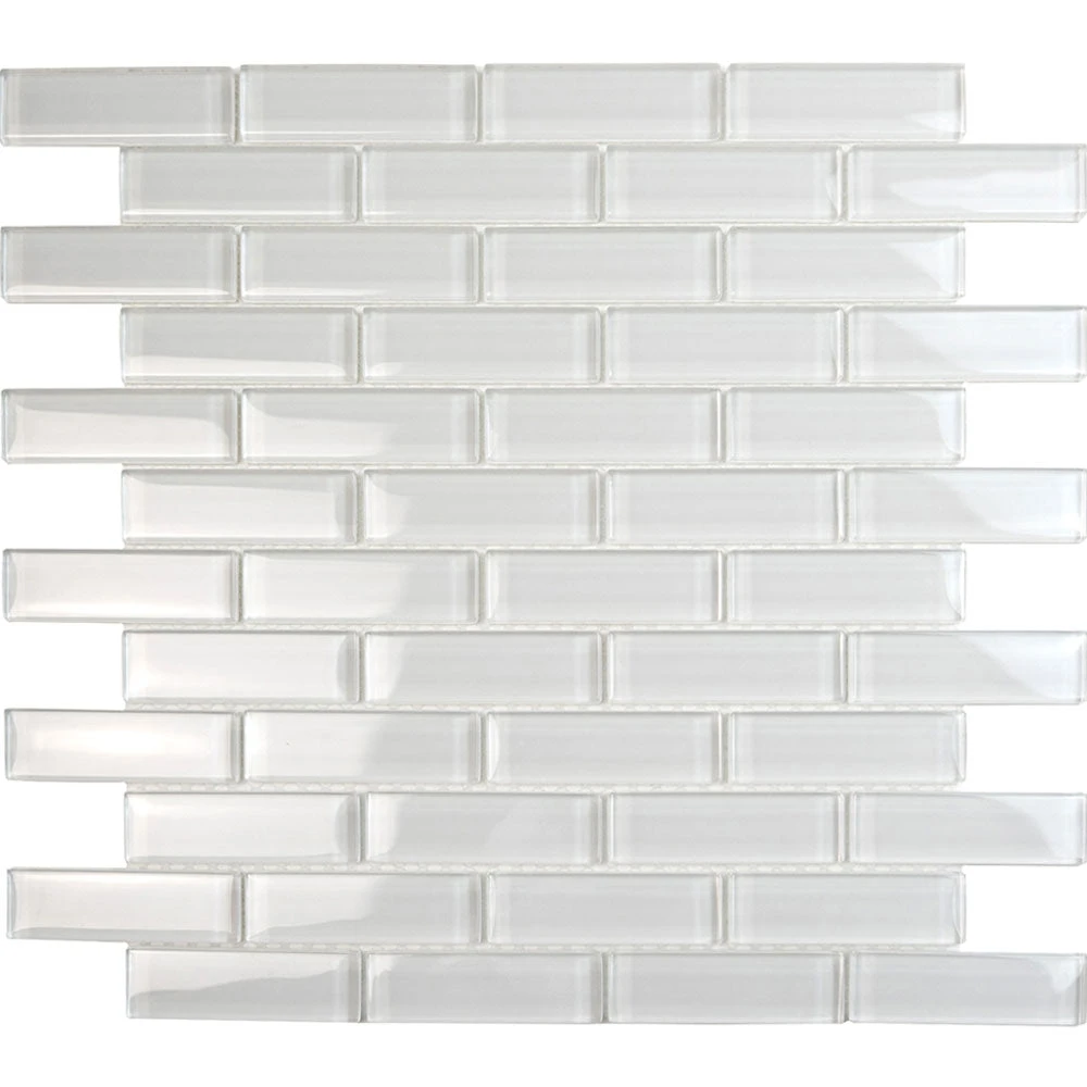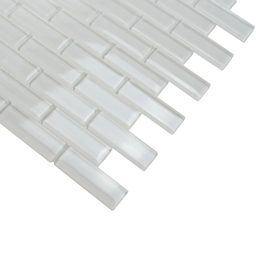 This tile is the contemporary version of the classic mini glass brick pattern tile. The white shiny glass material offers a modern twist to this classic pattern for a more bright, sleek look in your home. Mini brick tile pattern has a simple design that looks great in any décor as it is always a versatile choice in look and style. Glass tile is the perfect material for heavy-use areas, resisting stains and spills especially in kitchens and bathrooms. The smooth surface of the glass tile is impervious in that it requires no maintenance against possible mold and stains. This mosaic tile is suitable for kitchen backsplashes, shower walls, and accent walls as well. It is also a sturdy white glass floor tile. If you’re looking for a mosaic tile to blend into your décor, this tile will create a simple yet aesthetic addition to almost any room.