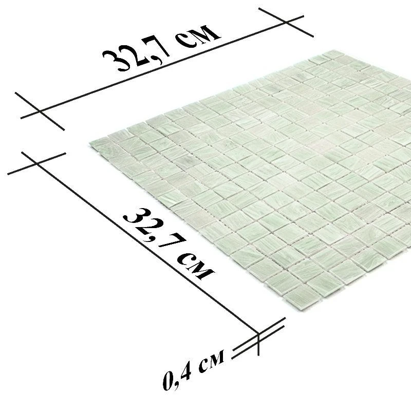 Each sheet of Icy Seafoam Squares Glass Pool Tile measures approximately 12″ x 12″, covering 1 square foot. Tile Club recommends using a glass adhesive for your installation – for the best results, consult with your tile installer about the best thinset and installation method for the area where you will be installing these glass mosaic tiles.