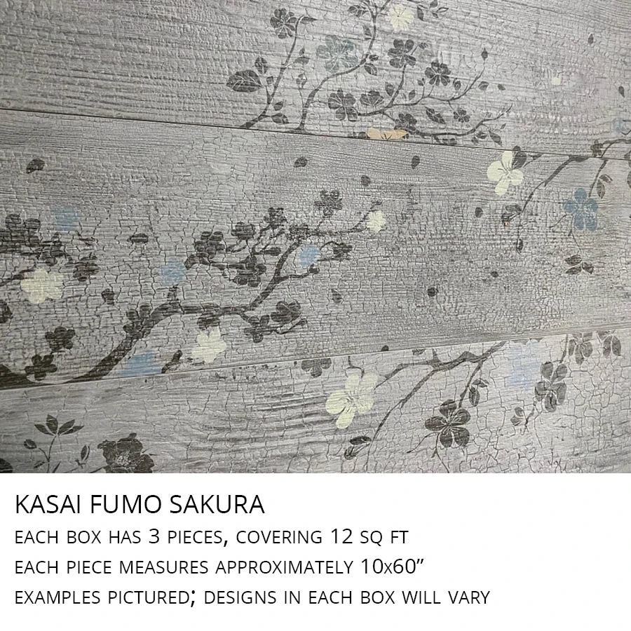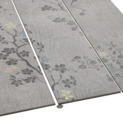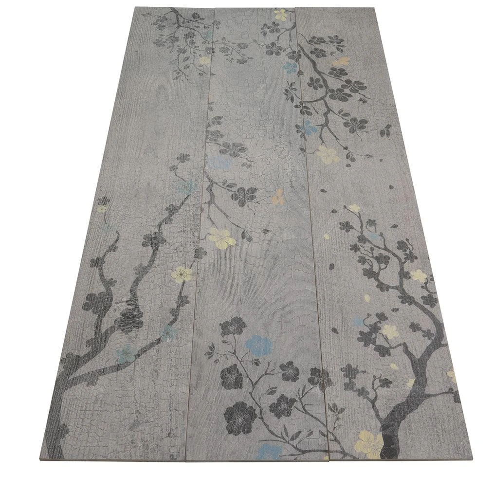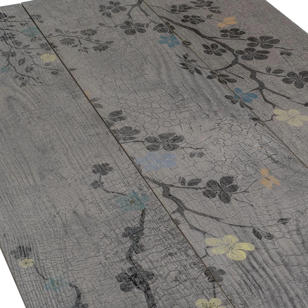 Kasai Fumo Sakura is our unique gray porcelain tile with a floral pattern that will bring a sense of sophistication to your home! The wood-look tile texture combined with gentle Sakura flower patterns creates a welcoming natural feel for any commercial or residential setting. This product is an elegant solution for various applications such as walls in general spaces and showers, a flower tile backsplash kitchen or bathroom, a statement wall, or an accent strip. Feel free to use this Kasai Fumo Sakura tile for floors in low or high-foot traffic areas. It does not require any special maintenance, is slip and stain-resistant, and is great for your home decor, patio, deck, or entrance.