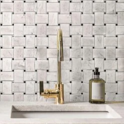 This large version of our best selling basket weave tile is made of Bianco Carrara marble and punctuated with Eastern black marble squares to create the signature woven effect! It’s a stunning marble tile for a modern kitchen backsplash with hints of traditional home decor! The marble mosaic tile is also a great option for home floors as well as high traffic installtions!
