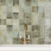 Add glossy shine with Luna Arc Celadon square ceramic tiles! The high variation of these glazed tiles adds a handcrafted look to any indoor wall installation. Celadon is a classic stoneware color with a soothing jade green color. These glazed tiles have a high level of natural variation, paired with an arc decorative design that adds a 3D detail. Lay out these square tiles in a classic design or angle for a diamond-patterned backsplash over your stove.
