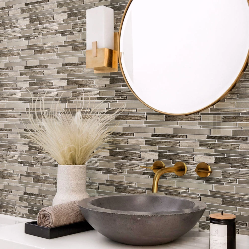 Can’t decide what tile material you like the most? With our Matchstix Athens Grey Marble And Glass Mosaic Tile, you don’t have to choose! This unique linear tile is composed of glass and Athens gray marble tile chips to deliver a dynamic eclectic look. Gray and beige tile colors bring a natural, earth-like palette, that serves as an excellent base for numerous design ideas. This product is long-lasting, easy to maintain and not affected by mildew or moisture. The honed tile finish paired with multiple grout lines adds slip resistance, which is a perfect feature for bathroom tile projects. You can safely use this marble glass mosaic tile for shower floors, walls, and bathtub surrounds. It is approved for both commercial and residential floors. Linear tiles create a gentle move and are great for accents such as backsplashes, feature walls, and niches.