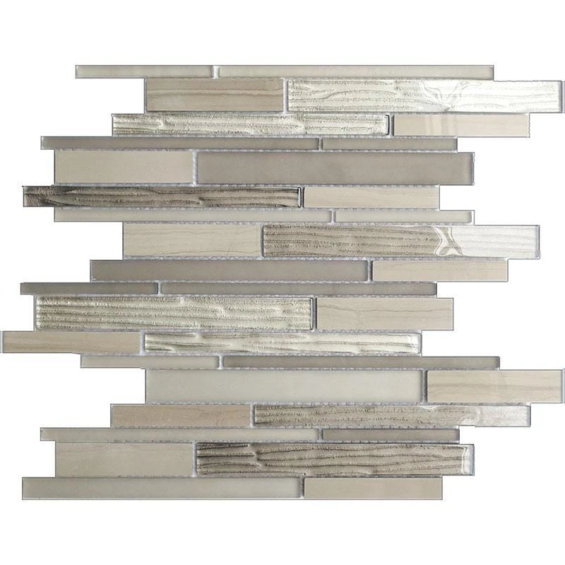 | Sold by: Sheet Sheet Size: 11.8″ x 11.8″ Chip Size: N/A Thickness: 5/16″ Material: Glass, Stone Color: Gray, Beige Finish: Polished, Matte Mounting type: Mesh Mounted Recommended Adhesive: Laticrete Glass Tile Adhesive Lite Packing info:
