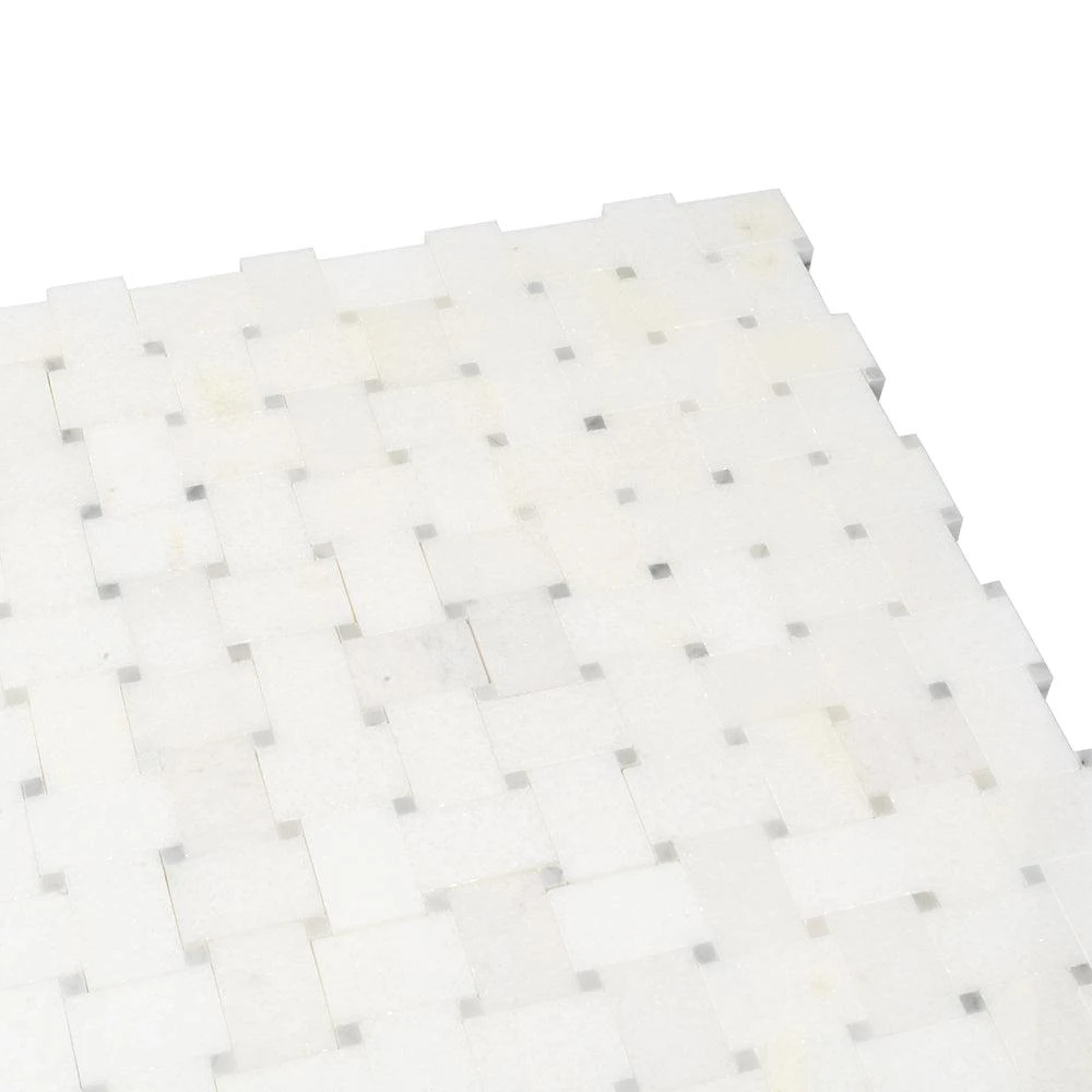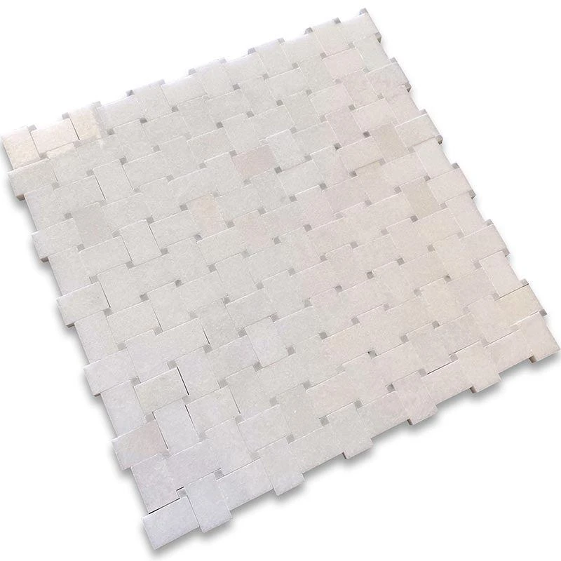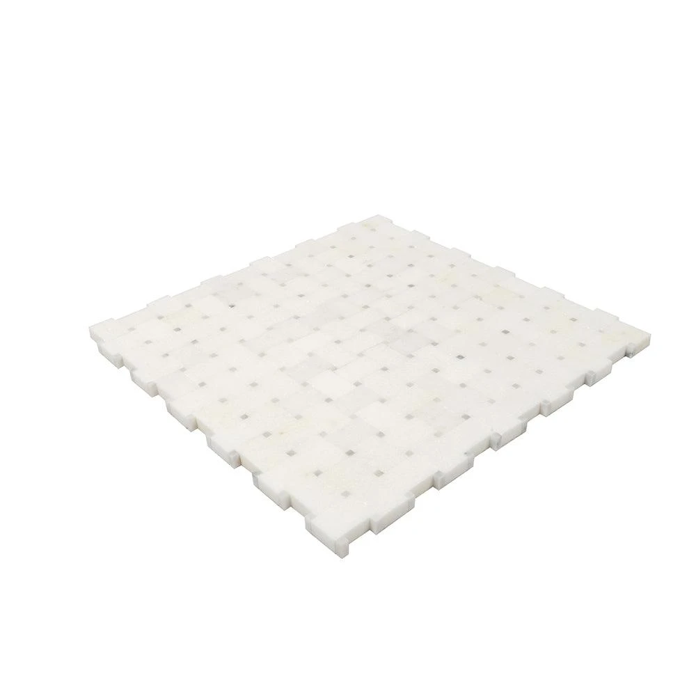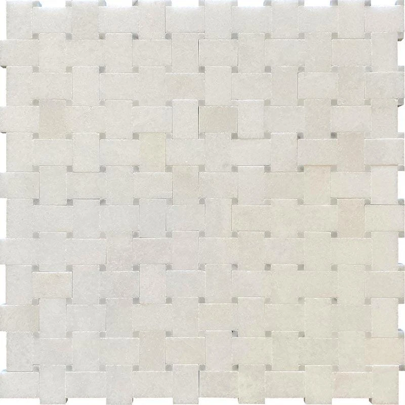A brilliant mix of different white tones in Eastern White and Bianco Carrara marble tiles will give your room the perfect stylish appeal it deserves. If you want to keep your design classic with a natural stone tile but feel like you need some pattern, here is the perfect dogbone tile for you. The timeless appeal of Thassos basketweave tile combined with this classic pattern helps create an attractive focal point in a room whether it’s a wall or floor.