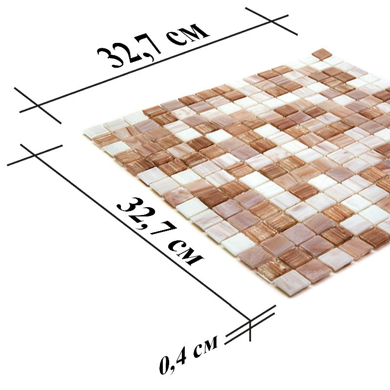 | Sold by: sheet Sheet Size: 12″ x 12″ Chip Size: 0.8×0.8″ Thickness: 1/4″ Mounting: Paper Facing Material: Glass Color: White, Beige Recommended Adhesive: Laticrete Glass Tile Adhesive Lite Packing info: