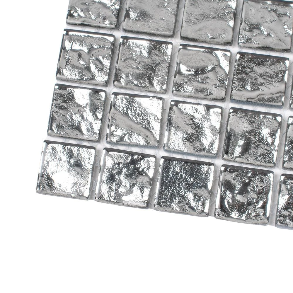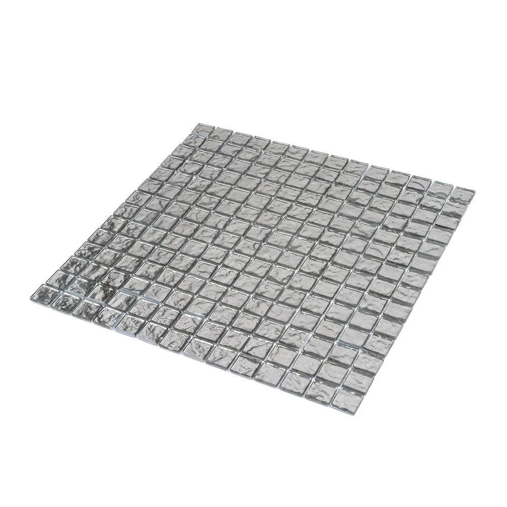 | Sold by: Sheet Sheet Size: 11.7″ x 11.7″ Chip Size: 0.8” x 0.8” Width: 11.7 Length: 11.7 Thickness: 5/32″ Material: Glass Color: Silver Finish: Glossy Mounting type: Mesh Mounted Recommended Adhesive: Laticrete Glass Tile Adhesive Lite Packing info: