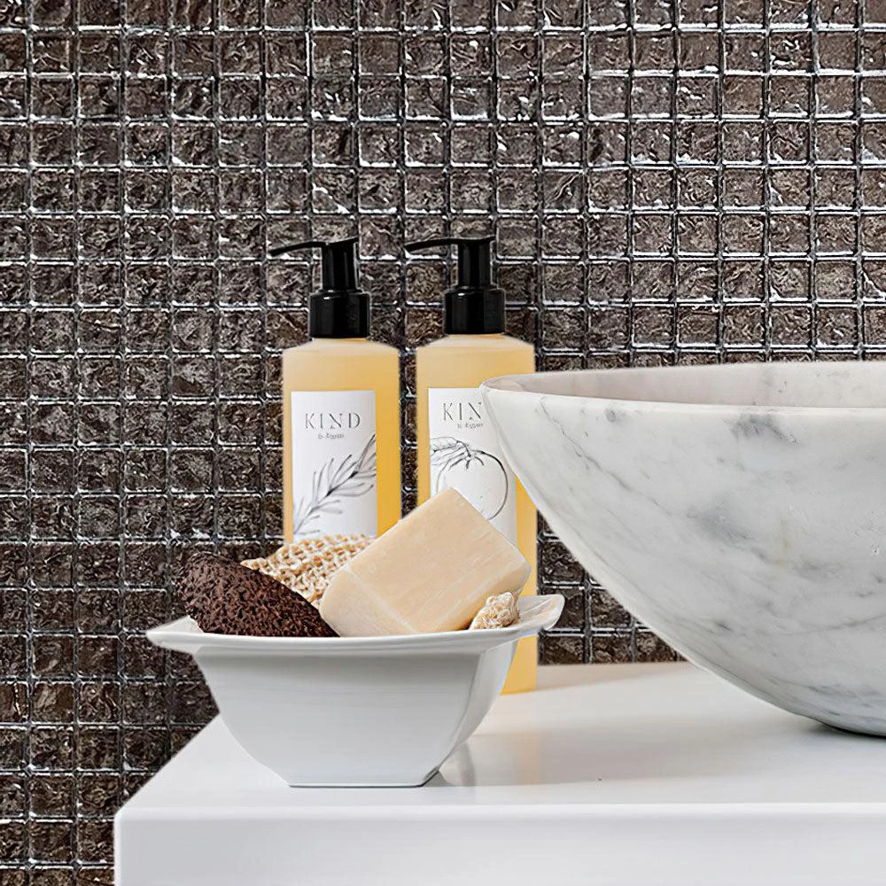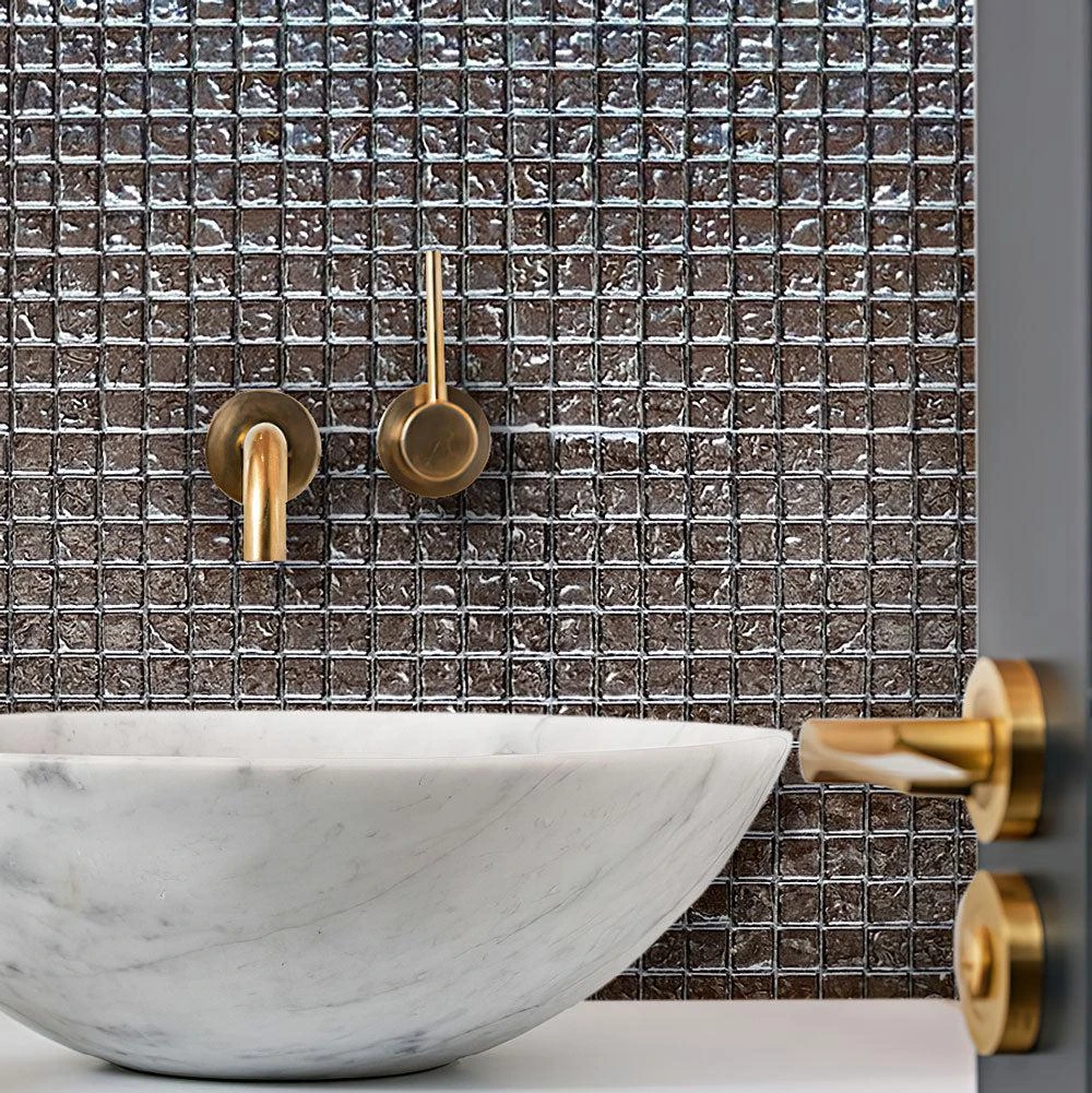 Mizumi Nickel glass mosaic tiles reflect light brilliantly and create an eye-catching style from every angle! These 1″ x 1″ silver color glass mosaic tiles are stunning showpieces that will bring a modern touch to any room. Using glass tile is an easy and versatile way to make your room sparkle! The glossy finish captures the light and adds an elegant iridescent detail to any project. This tile promises to give a modern edge to an otherwise traditional design. The glass is strong and resistant to chemicals, making these tiles highly durable for almost any room in your home. It offers countless design possibilities in kitchens as well as bathrooms and commercial settings. Use this nickel glass mosaic tile as a sparkling kitchen backsplash, or as a light-catching shower wall tile! Low maintenance and easy clean glass tile will make your life so much easier!