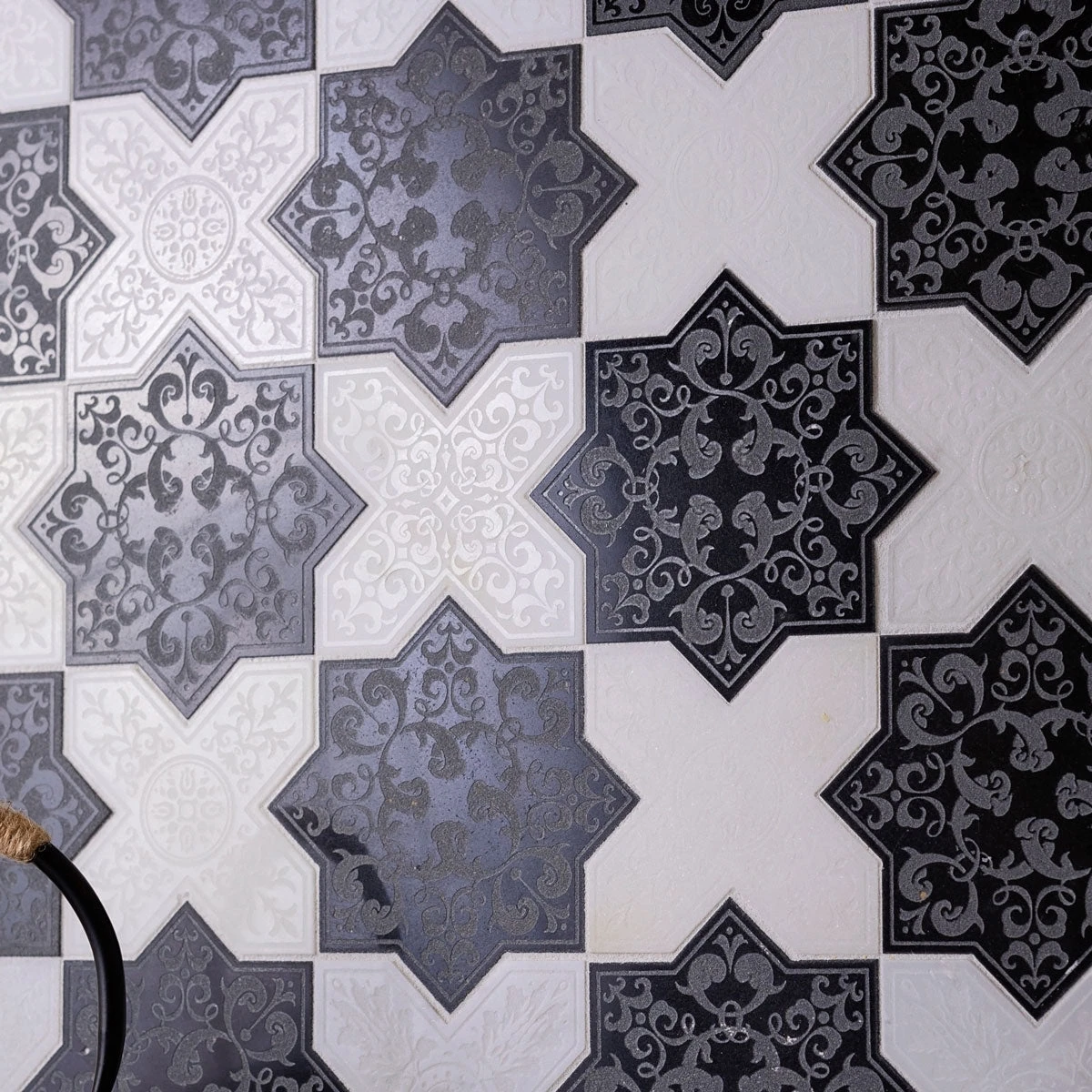 Love the look of our Moroccan Star and Cross marble mosaic tiles? They now come in a pre-mixed pattern with black marble star and white marble cross tiles! This new combination makes it easier than ever to get the perfect mix and match look for your checkered bathroom floor, black and white backsplash kitchen tile, dramatic fireplace surround, or stunning black and white accent wall.