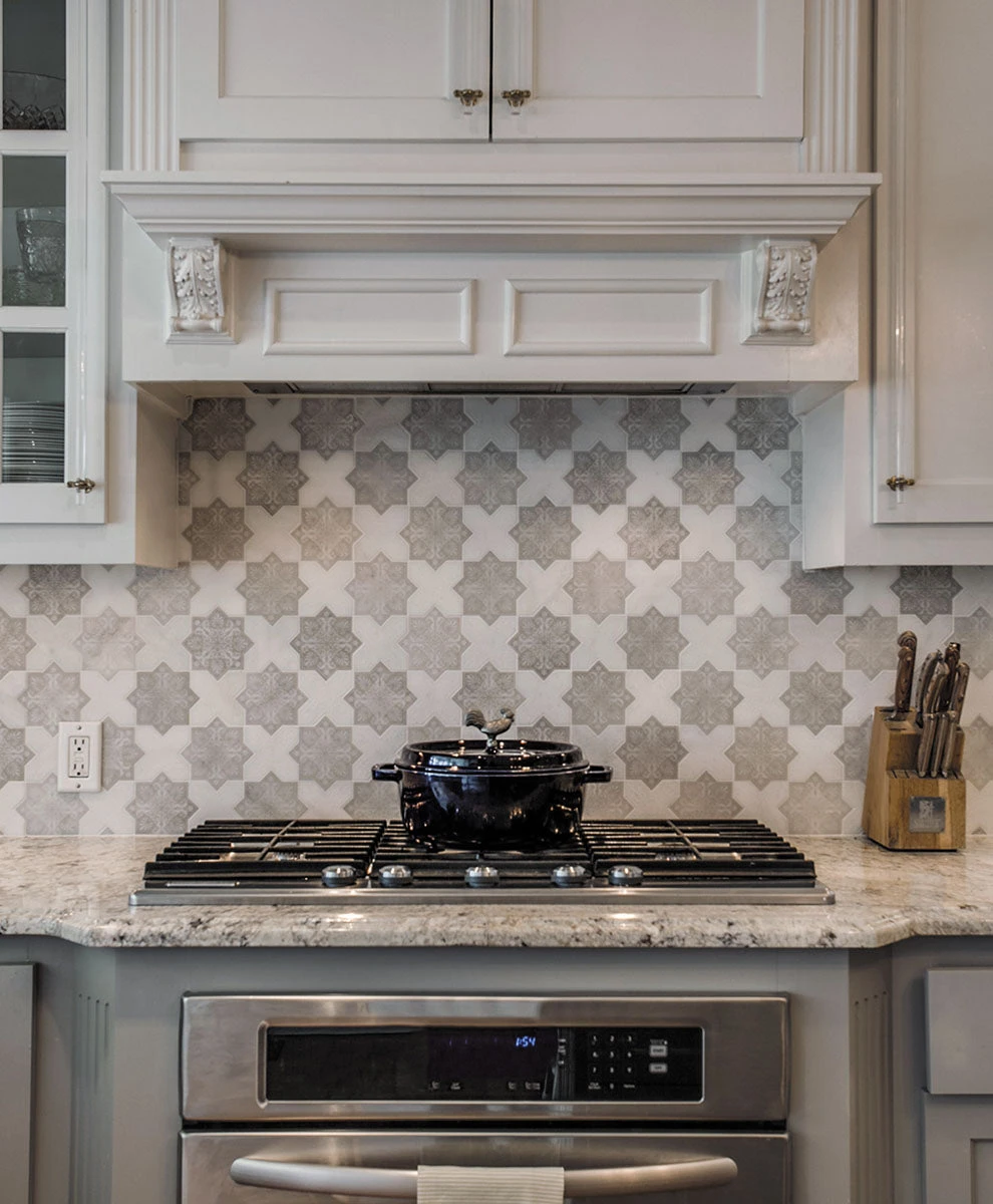 A classic Moroccan tile pattern is elevated with intricate etched details in our Star & Cross Etched Marble Mosaic Tile! This beautiful interlocking tile design is made of natural stone in a soothing gray color. It’s the perfect option for a beautiful shower wall or floor tile, a classic kitchen backsplash design in an elegant neutral, or a beautiful tiled fireplace! These tiles are sold by the sheet and are frequently ordered with a corresponding color to allow you to mix and match the interlocking designs. Frequently pictured with our Moroccan Star & Cross White Etched Marble Mosaic Tile to add a contrasting color. See pre-mixed color options in our Star and Cross tile collection for all of the available designs!