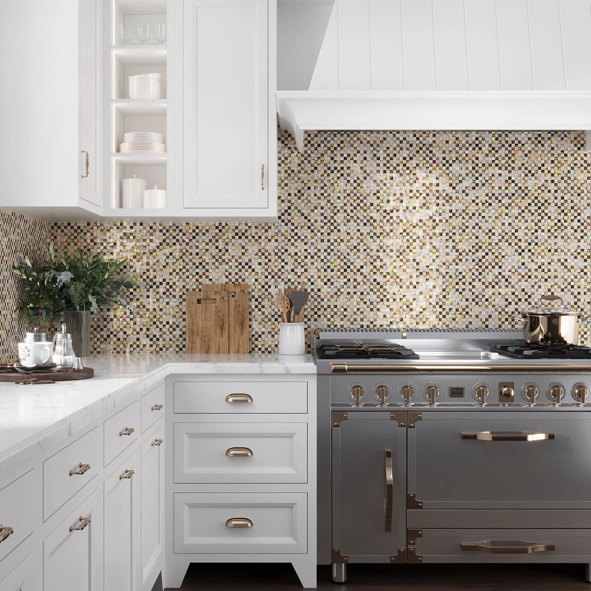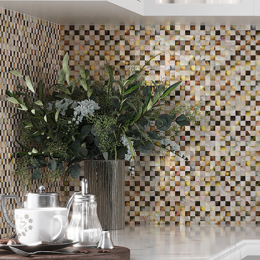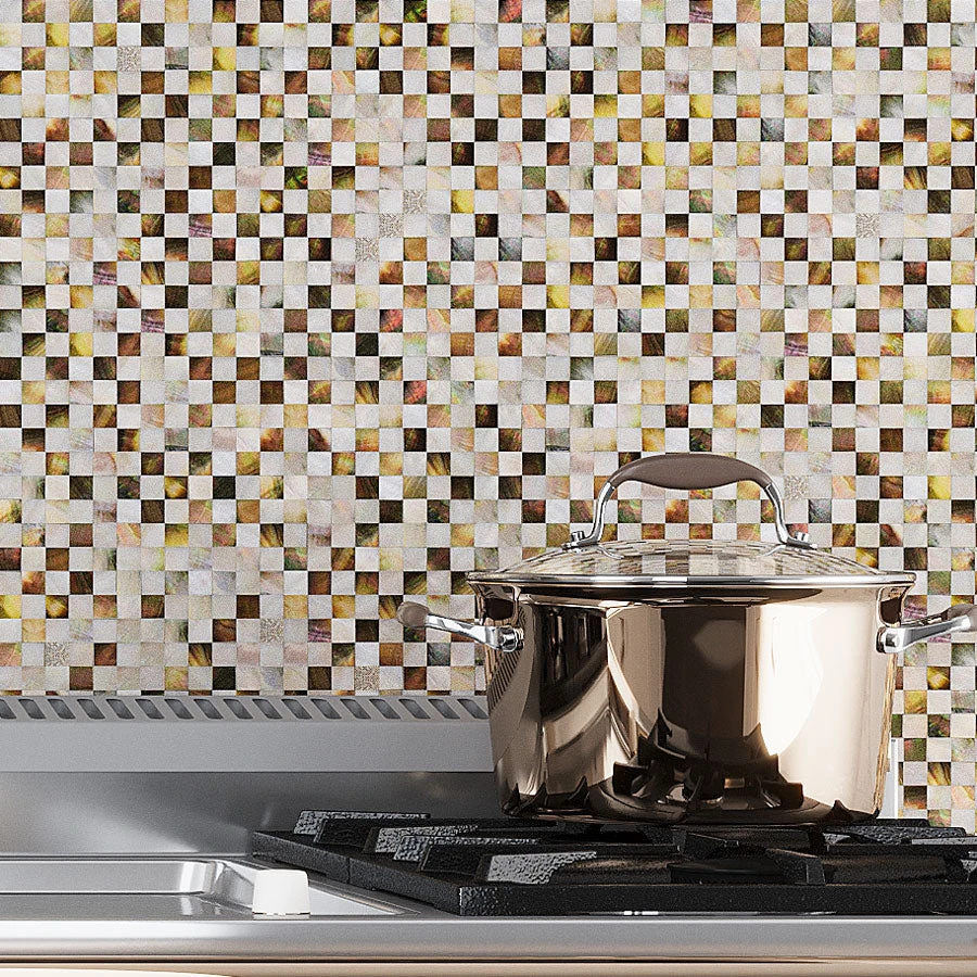 This Mother of Pearl mosaic will check and mate any other tile design. Lustrous pieces of a natural shell are mixed to create a stunning visual attraction for any indoor project. White, beige and brown mosaic chips are combined to deliver a dynamic feel to your space and glow it with natural pearl texture. Inspired by the ocean this checkboard tile will bring a fresh, peaceful ambiance and unique look. Mesh-back of each square sheet helps with an easy and quick installation. It is a durable, eco-friendly product that does not demand any special maintenance. Artful ideas for kitchen backsplashes, feature walls, borders, mirror surrounds, niches and other decorative elements. You can use it by itself to cover bigger areas as well. Put these marvelous checkered floor tiles to any light traffic space and be ready to receive compliments for many years long.