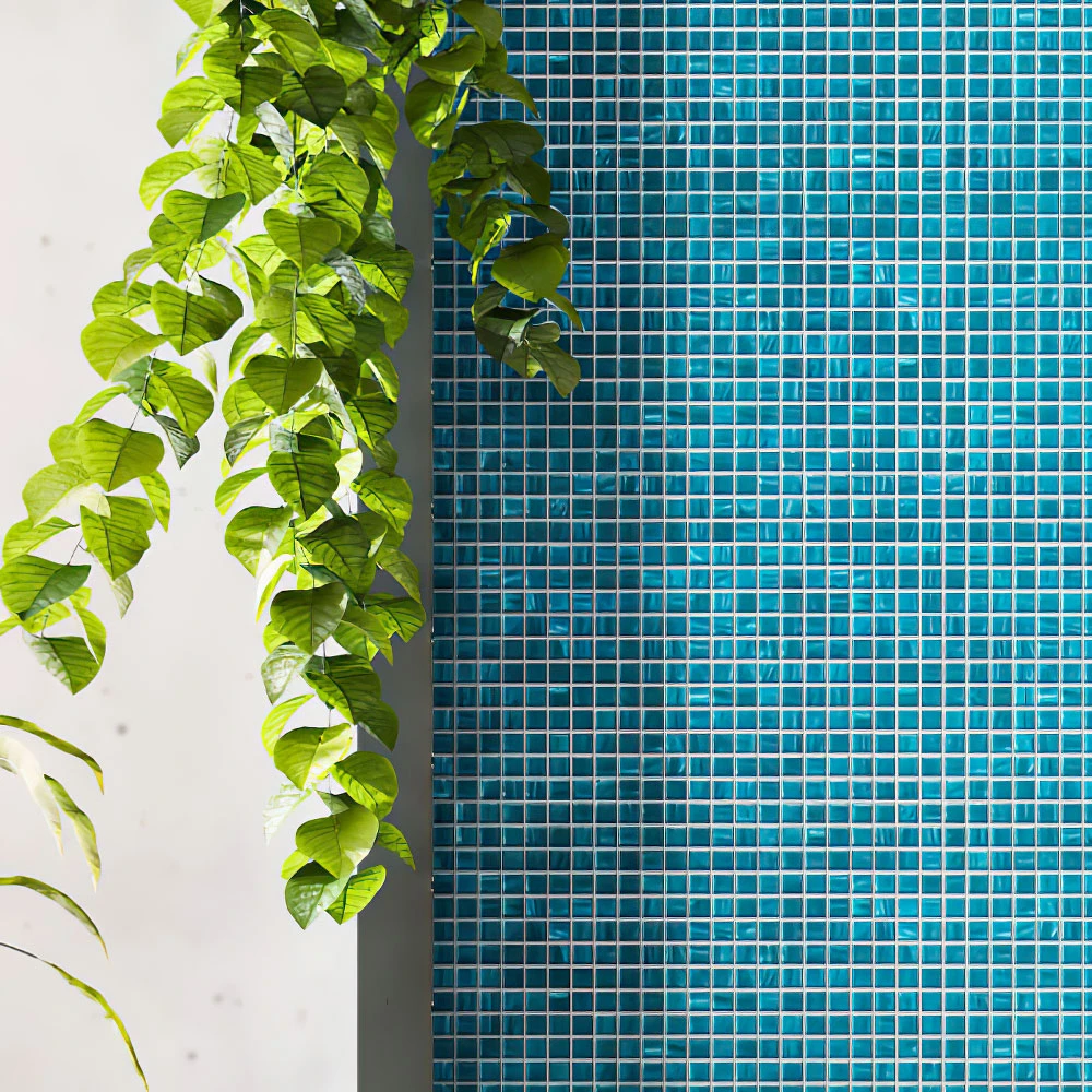 Each sheet of the Ocean Blue Mixed Glossy square glass pool tile is approximately 12”x12” covering 1 square foot and conveniently on a paper-faced mount. Tile Club recommends using a glass adhesive for installation but for the best results always consult your installer. The paper facing can easily be removed with water once the tile adhesive is set, and before grout is applied.