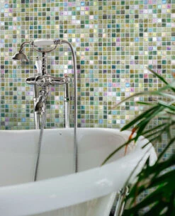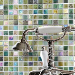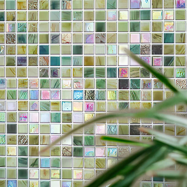 Be the first to review “Olive Green Iridescent Mixed Squares Glass Tile” Cancel reply