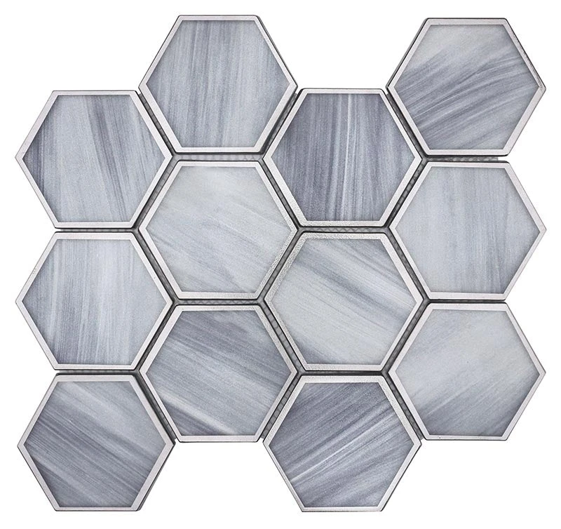 Decorative Mosaic tiles evoke a feeling of style and lavish luxury that very few wall tiles can match, and our Opal Marbled Glass Hexagon Mosaic Tile brings powerful dimension like no other! This decorative tile combines marbled hues of matte glass in gray and blue — resembling stunning opal gemstones — with a metallic border that adds a modern touch. Glass mosaics can set your bedroom, kitchen, living room, dining room, or even a pantry apart in ways that bring out the best in your home design.