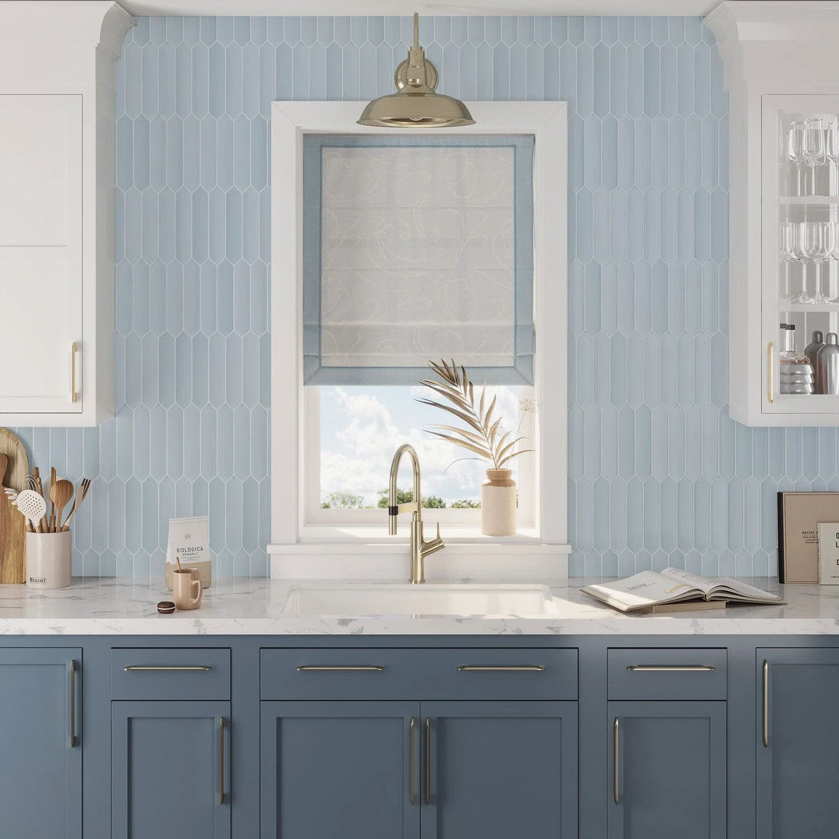 | Sold by: Box Piece Size: 2″ x 10″ Thickness: 5/16″/ 9 mm Material: Ceramic Color: Light Blue Packing info: