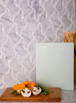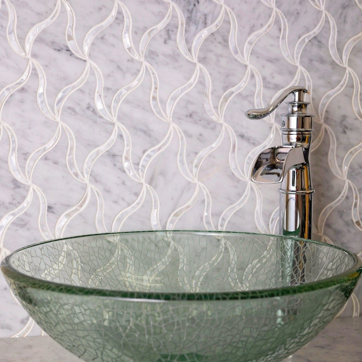 Pearl Ribbon is a mosaic tile with character! Timeless Carrara marble is paired with shell mosaic pieces to create a new spin on a classic design. The contrast of traditional white marble and shiny pearl shell forms a mix of textures and abstract lines, crafted in a unique tile pattern to achieve a dynamic feel. These waterjet mosaic tile sheets are interlocked together for quick and easy installation while creating a dazzling pattern on your walls or floors. The sustainability of marble tile makes it an ideal pick for a wide range of home upgrade projects! This product is perfect for your shower tile design since it can be installed on bathroom walls and shower floors. It is a popular marble mosaic for kitchen, dining rooms, and laundry rooms.