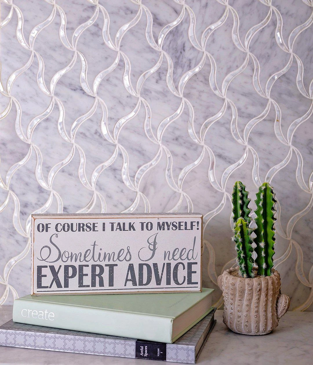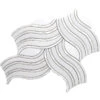 The ribbons of Mother of Pearl shell pieces add a dazzling shine between abstract Carrara marble pieces. This gorgeous patterned tile can be used for a decorative backsplash or shower niche, a statement floor in your entryway or a stunning fireplace surround with marble and iridescent pearl shine.
