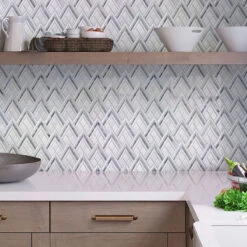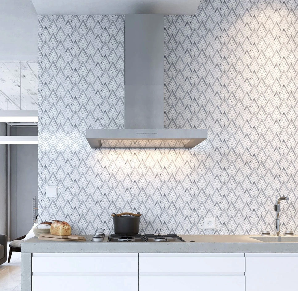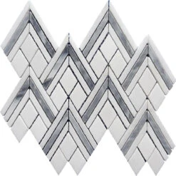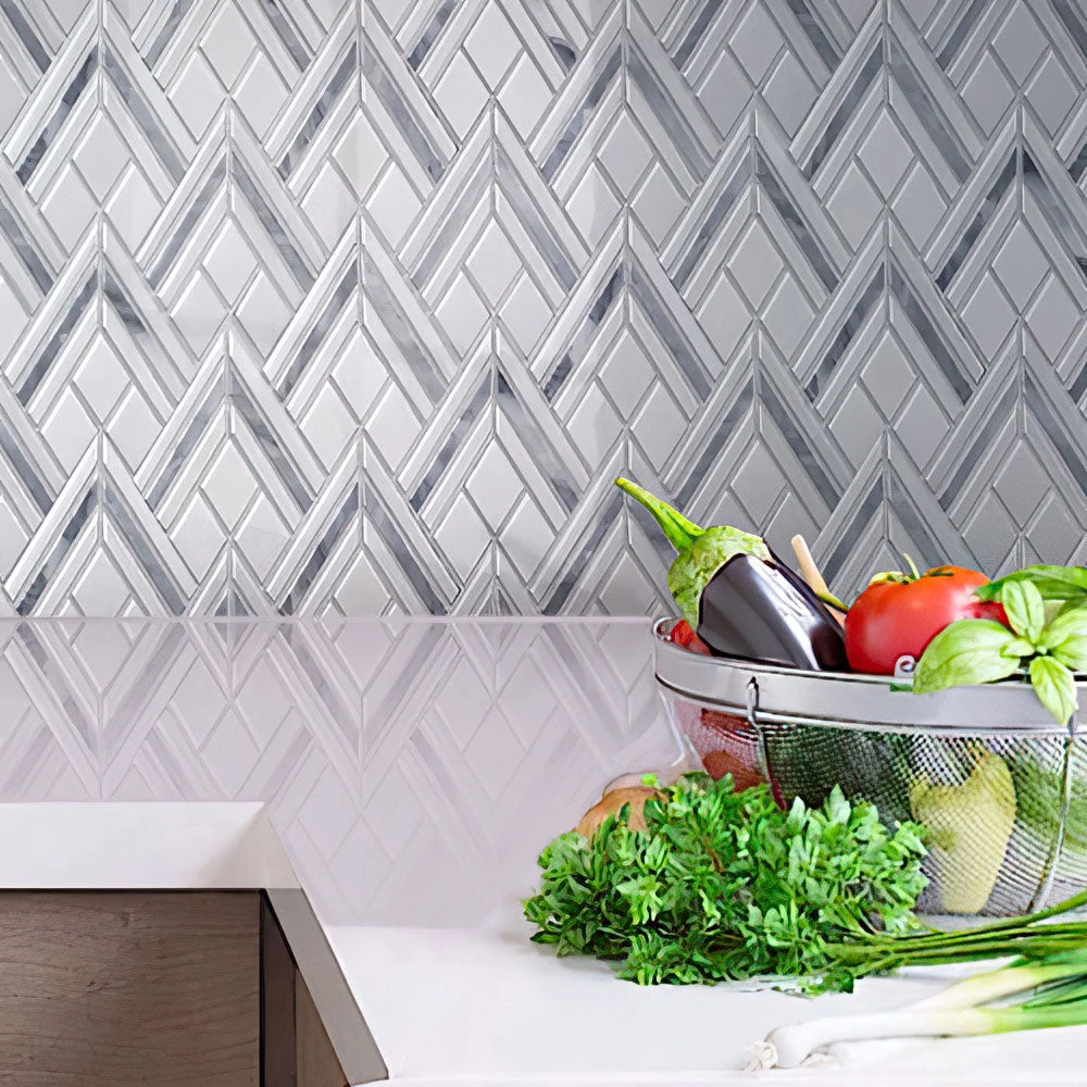 Our Pike Peak mosaic tile is a perfect blend of Thassos White with Bardiglio accents.